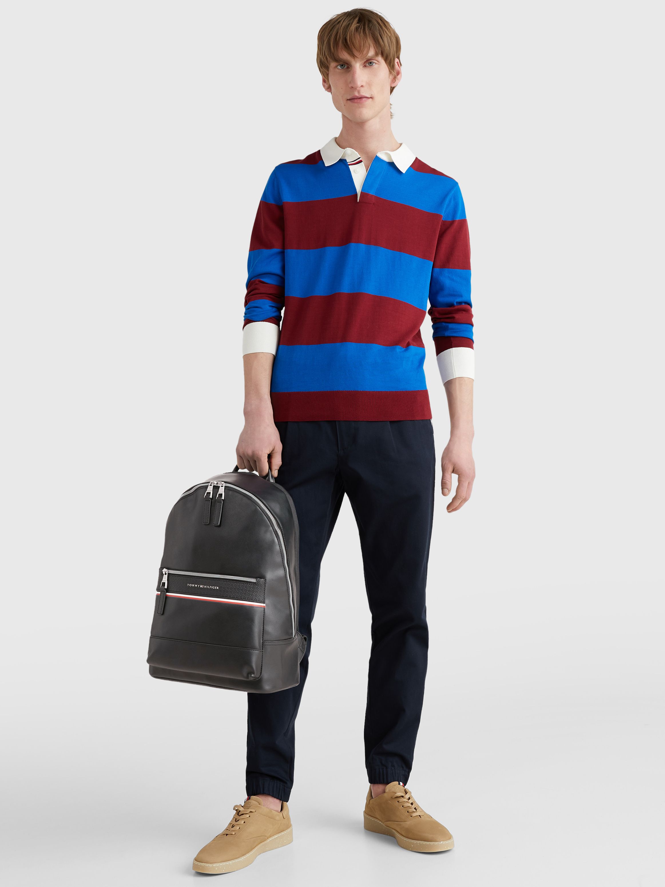 احصل على حقيبة الظهر هذه التي تتميز بظهر مبطن ومريح ومقبض علوي مزين بشريط الشعار فهي مثالية عندما يحين وقت الخروج من المنزل.