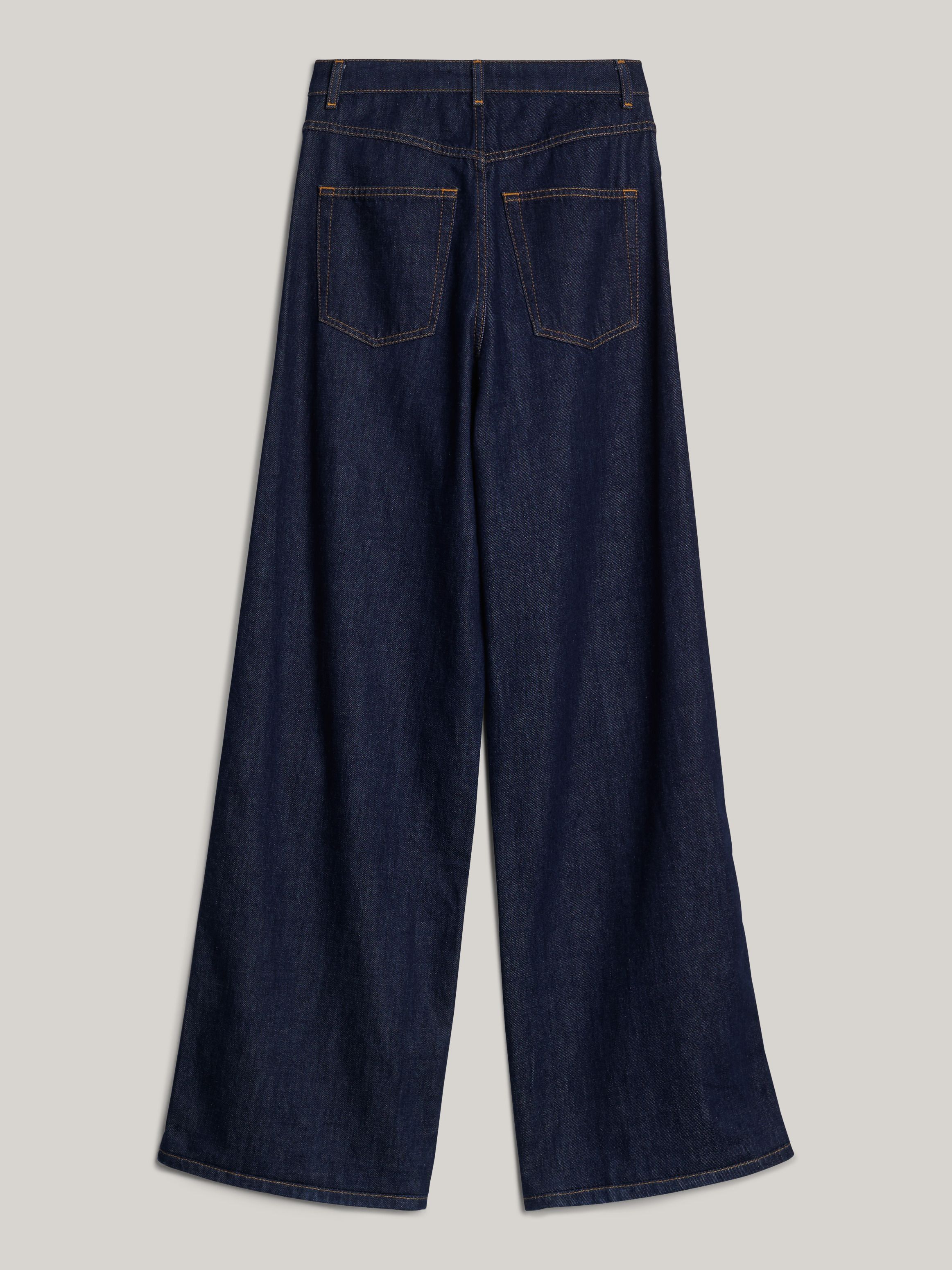 صُنع هذا البنطلون الجينز ليضفي لمسة راقية على إطلالتك، مع قصة الساقين الواسعة للمزيد من الأناقة.<