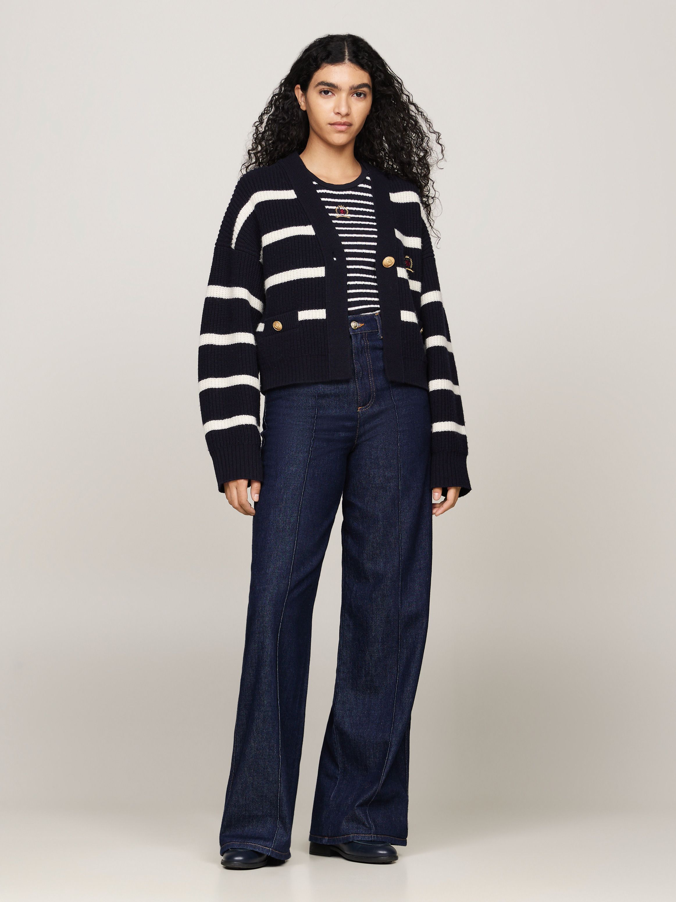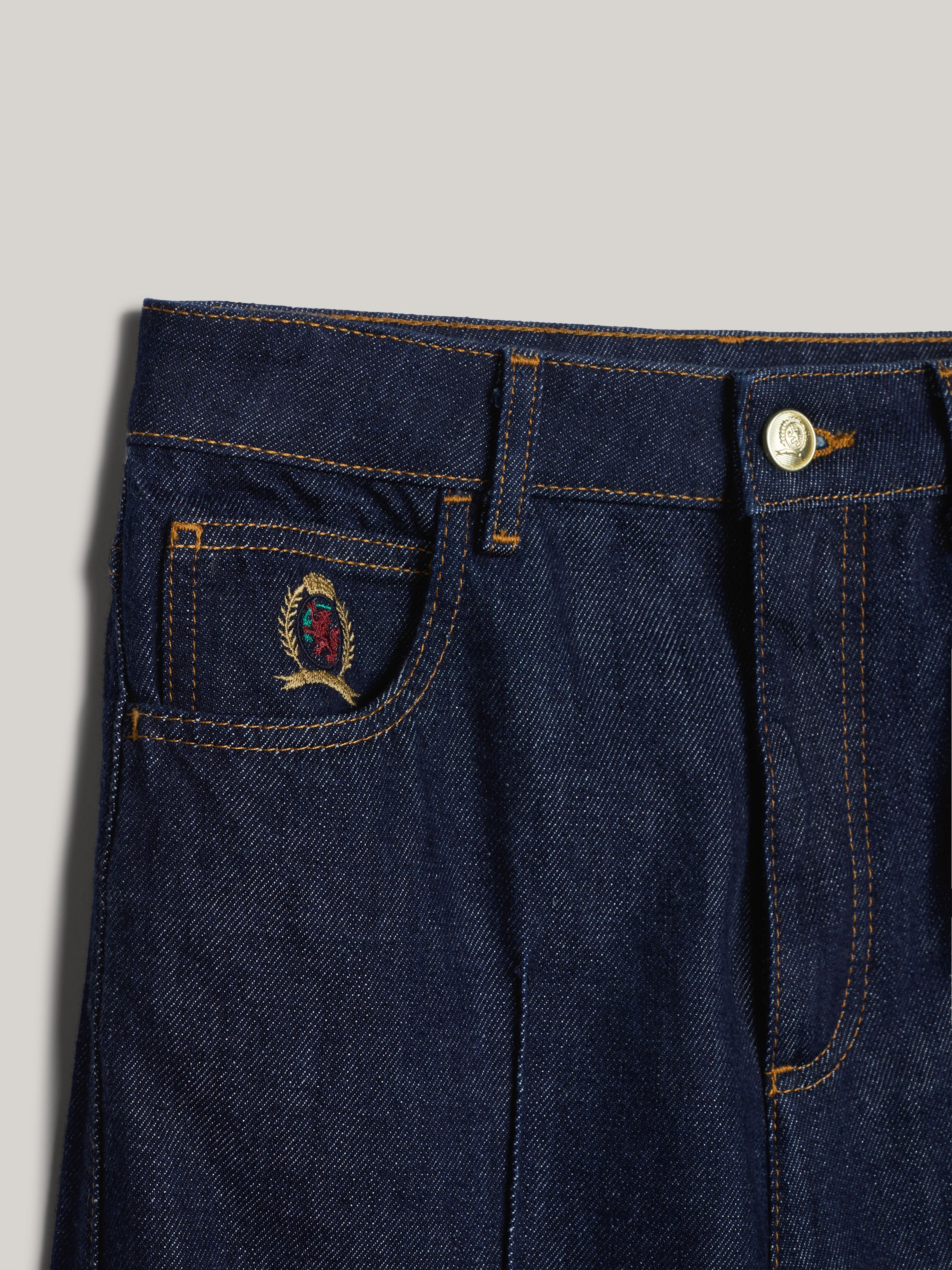 • دنيم صلب • خياطة بارزة من الأمام • يُغلق بسحاب مع زر • تصميم بخمسة جيوب • تطريز شعار مجموعة تومي هيلفيغر على جيب العملات المعدنية • علامة مجموعة تومي هيلفيغر التجارية