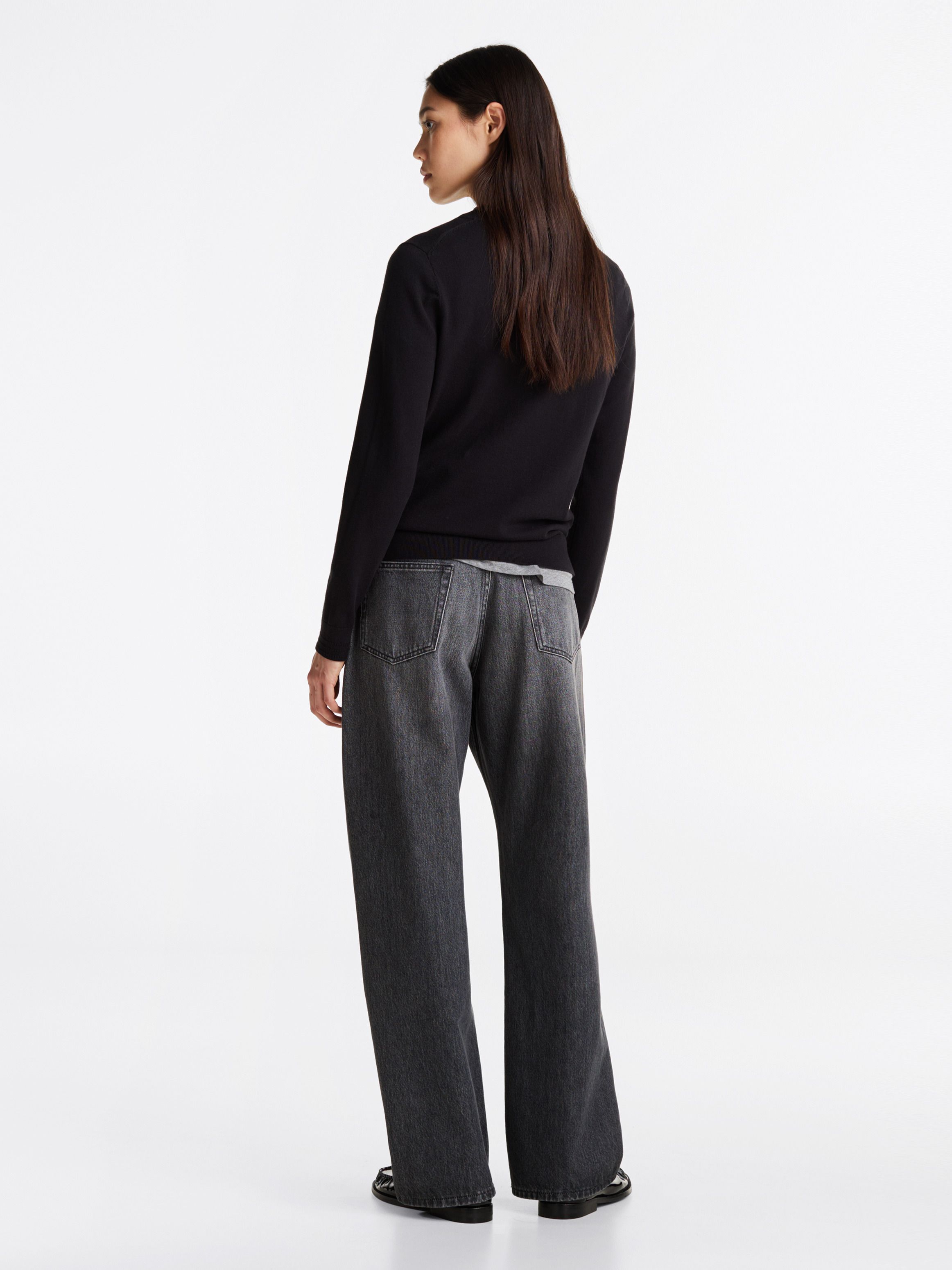 • بنطلون جينز بخصر عالي وقصة مستقيمة