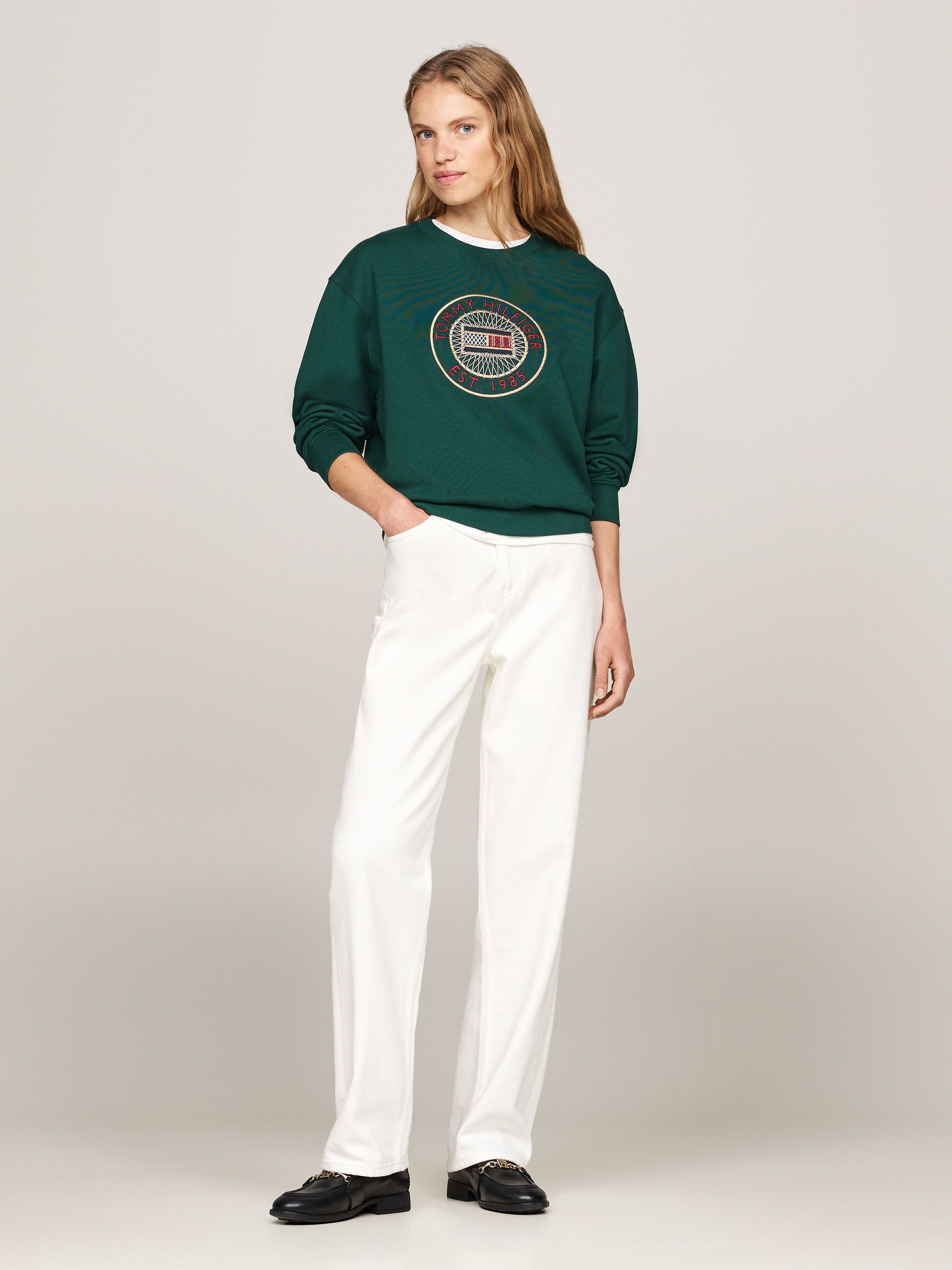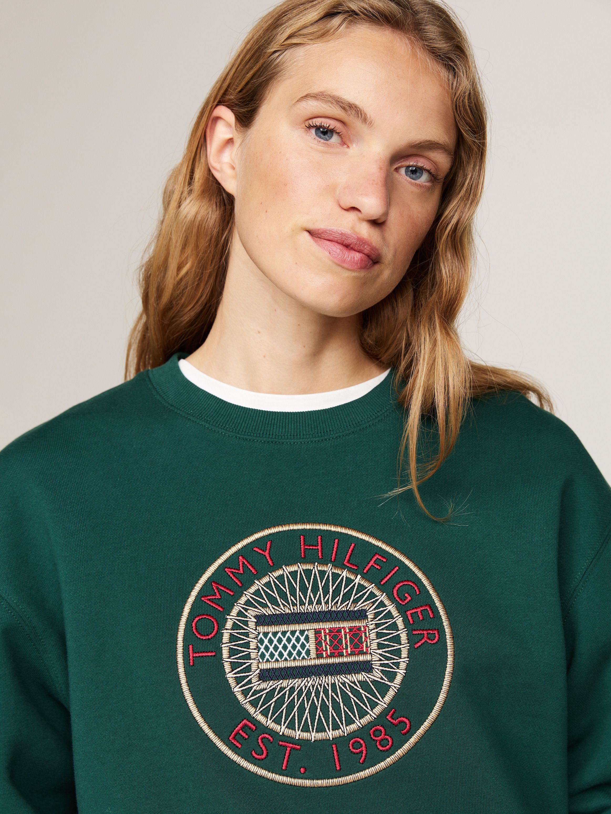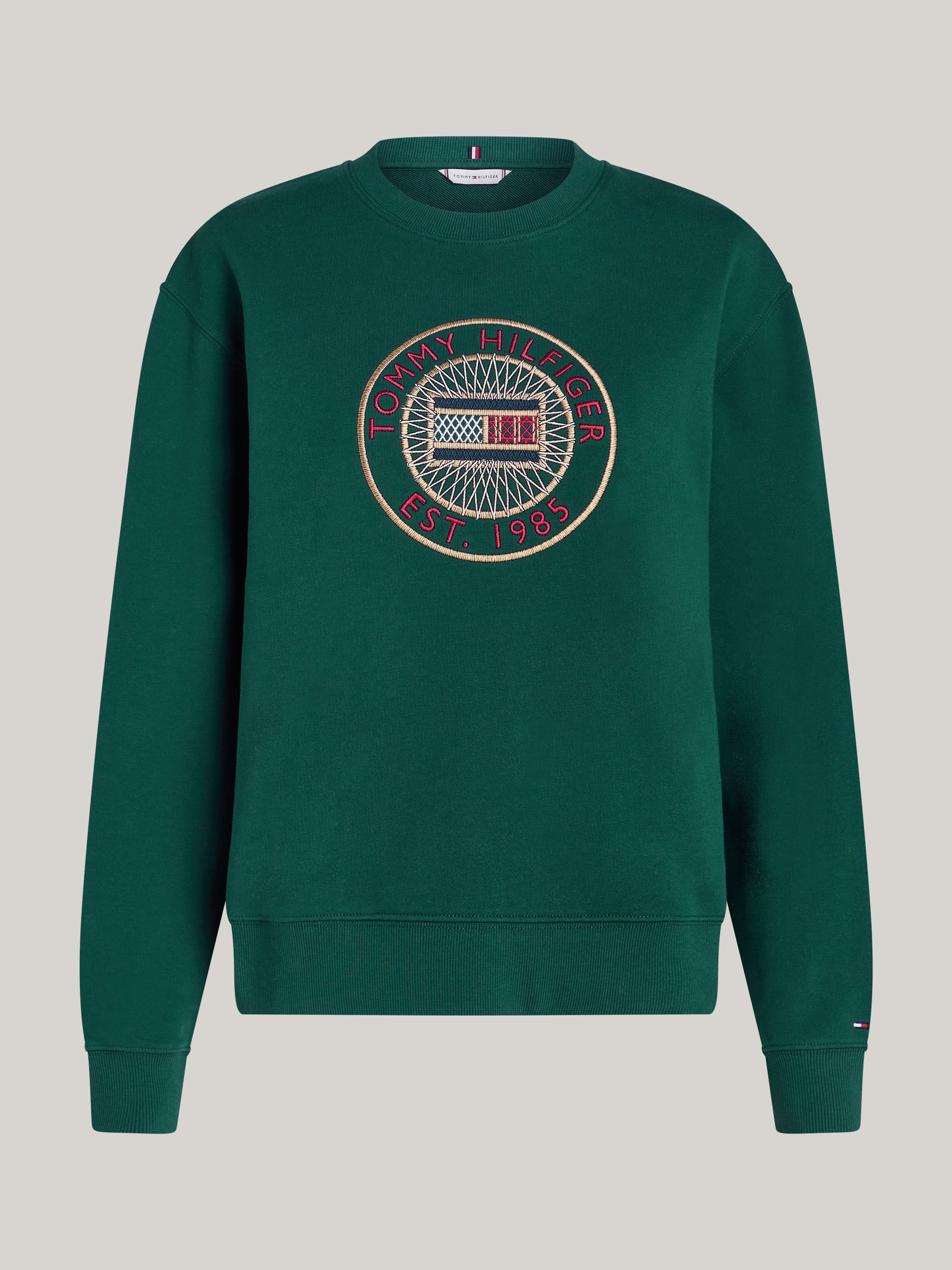 • سويت شيرت بياقة دائرية ومطرز بالشعار