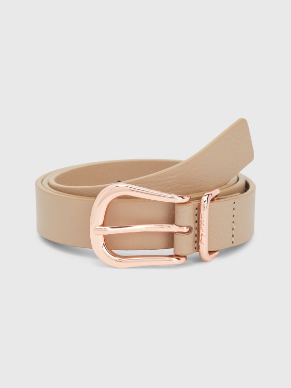 أضيفي لمسة ذهبية الى ملابسك بحزام جلد بإبزيم معدني لامع وحفظة لامعة لمظهر عصري أنيق.